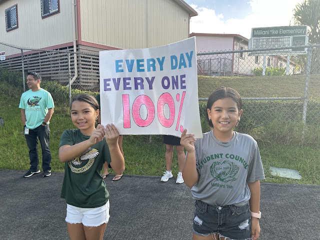 Our Student Council Officers, Jaxon, Ryder, Maddie and Micayla started off the school year by attending Complex Leadership Training. The meeting on Thursday, August 15 was attended by the Student Councils of all Mililani public schools. The purpose of the training was to help prepare our new Officers to be our school’s student leaders. The Officers learned about the responsibilities of their individual positions in addition to activities and ideas they will be sharing with the 2024-2025 Student Council.
